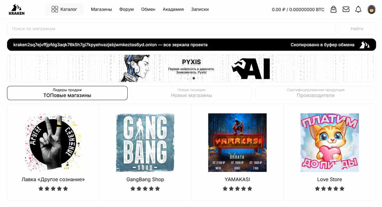 Пользуюсь Kraken уже не первый раз и могу сказать, что площадка оставляет понятное и стабильное впечатление. Интерфейс логичный, без лишней перегруженности, все основные разделы находятся быстро. За время использования проблем с доступом не возникало, что для меня было важно.